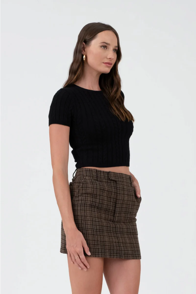 Cable Crop To by blu pepper is a cozy short sleeve knit top that goes with just about everything. The snug body is complemented by a round neck, textured cable knit, and short sleeves.
